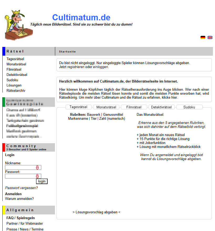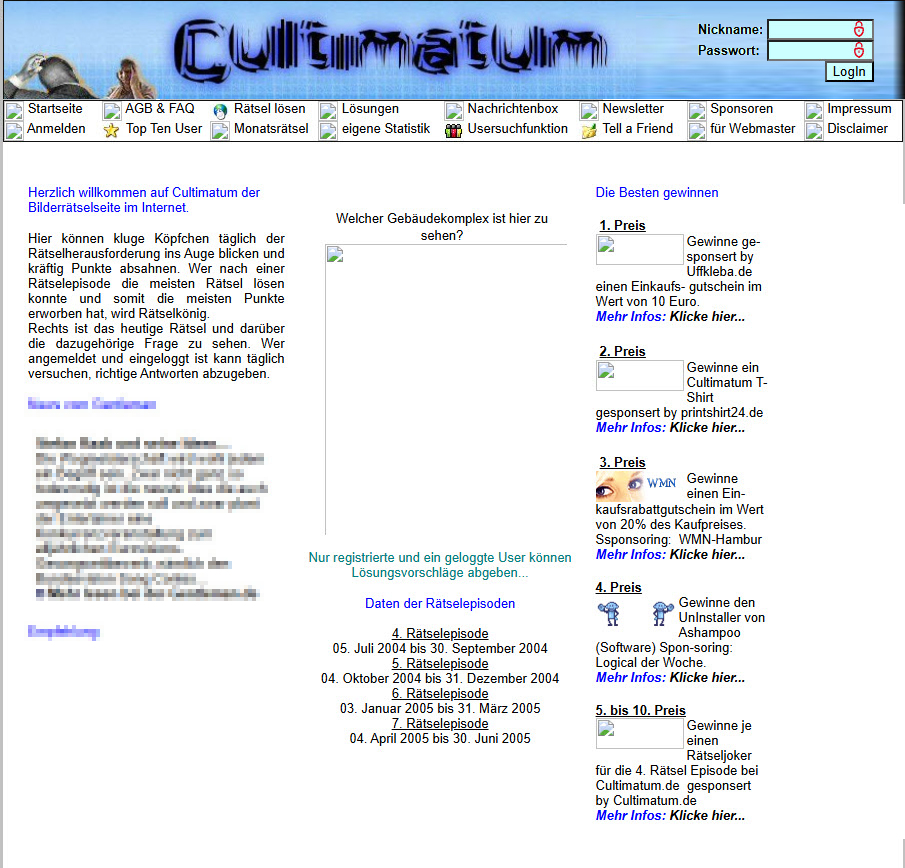 Typisch für die damalige Zeit war das Design – etwas überladen, bunt, verspielt und voller Community-Charme. Aber genau das war Teil des Reizes: Man sollte nicht nur rätseln, sondern sich wohlfühlen, miträtseln, mitfiebern – und vielleicht mit dem einen oder anderen Mitspieler in Kontakt treten.